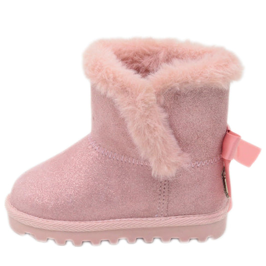 BEARPAW Toddler Suede Winter Boots with Faux-Fur Lining - Rose Gold Glitter