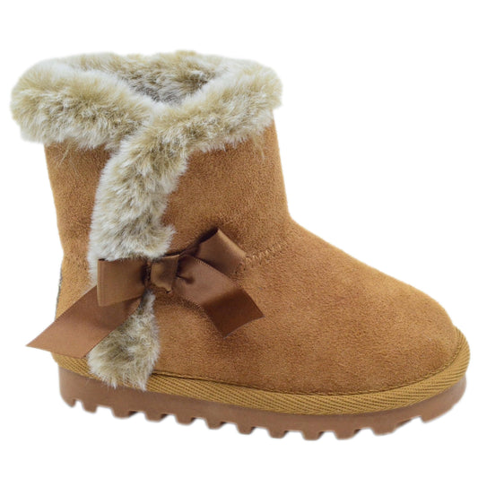 BEARPAW Toddler Suede Winter Boots with Faux-Fur Lining - Chestnut with Bow