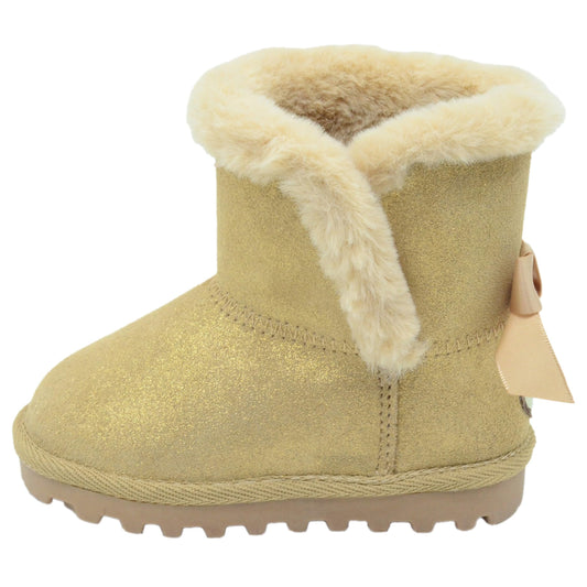 BEARPAW Toddler Suede Winter Boots with Faux-Fur Lining - Champagne Glitter