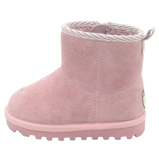 BEARPAW Toddler Suede Winter Boots with Faux-Fur Lining - Mauve with Woven Collar