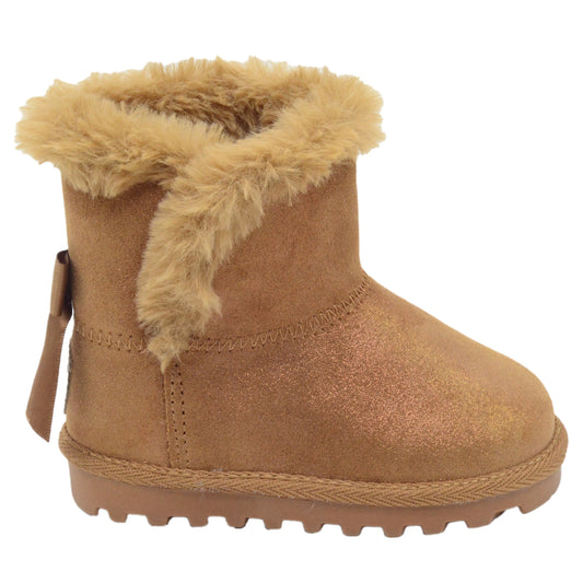 BEARPAW Toddler Suede Winter Boots with Faux-Fur Lining - Chestnut Glitter