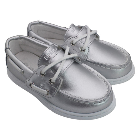 Sperry Toddler Cup II Boat Shoe with Memory Foam Insole - Textured Silver Leather
